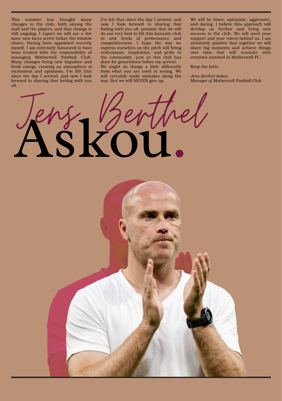 “It’s not about me making my mark,” Askou said. “It’s about Motherwell Football Club. About the players. The fans.”